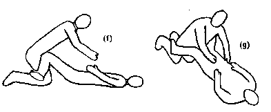 In the far guard (f) \& (g) the person on top is kept away with the knees. In this position, the top person is too far away to effectively punch at the bottom person's face.